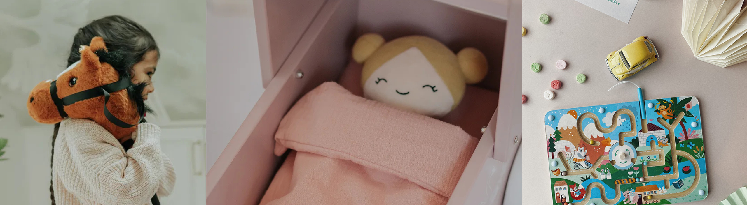 Derfor udvælger vi udelukkende produkter, hvor kvalitet, sikkerhed og udvikling går hånd i hånd. Legetøj, der kan holde til gentagen leg, og som understøtter barnets naturlige nysgerrighed og lyst til at lære gennem oplevelser.