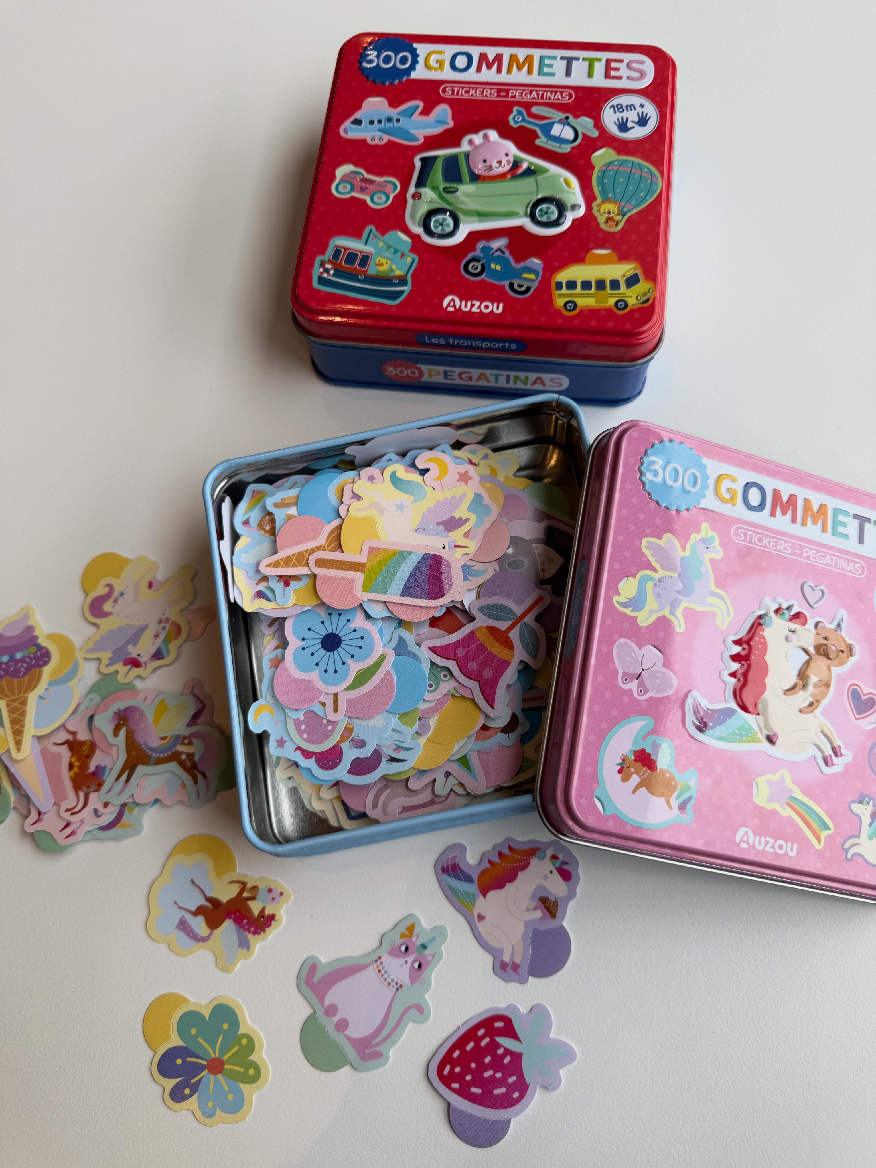 300 klistermærker i sød metalæske fra Èditiones Auzou - perfekt til kreativ leg for små børn.