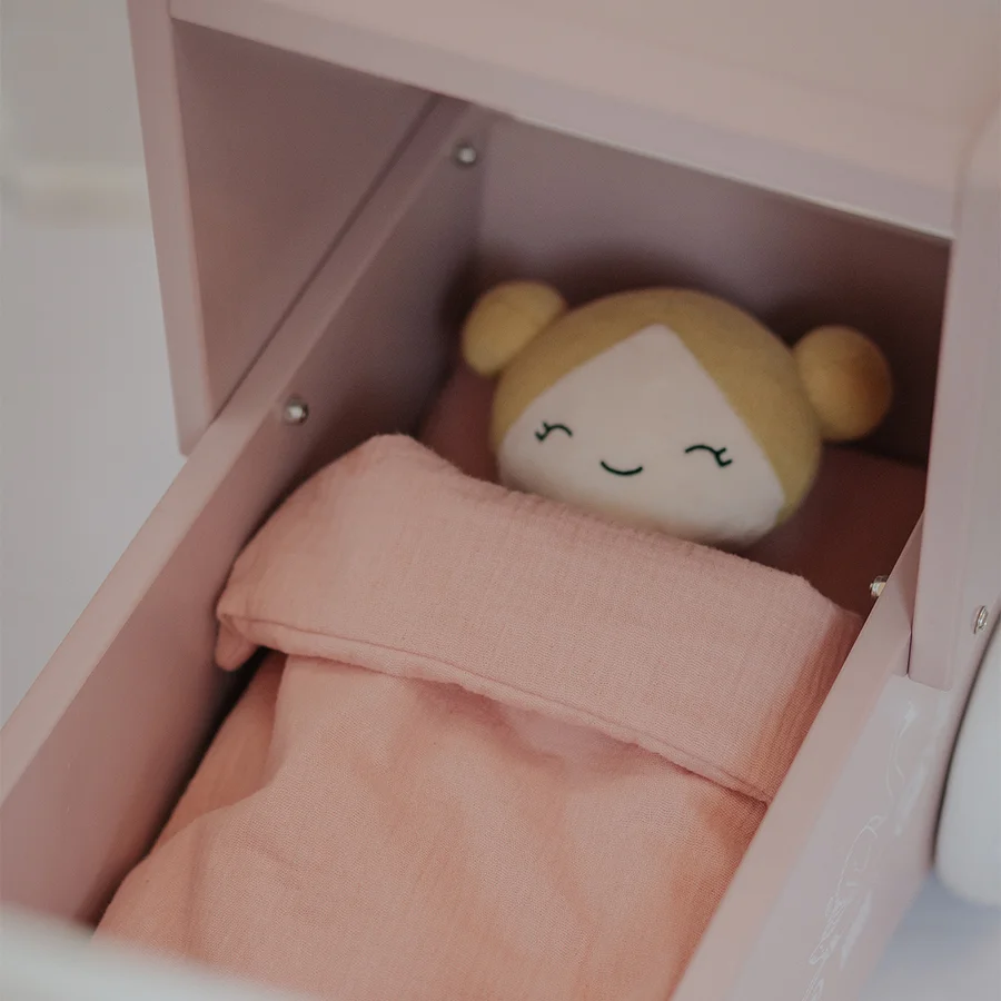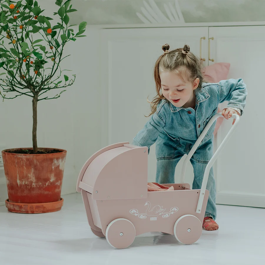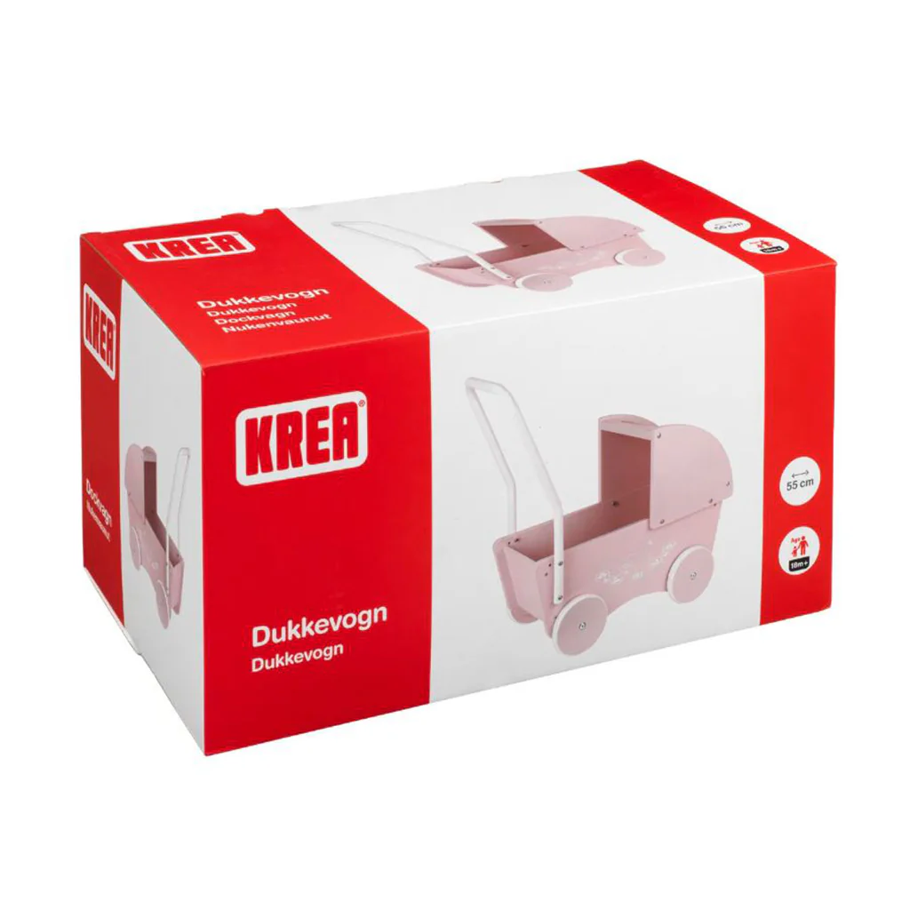 KREA ⎸ Dukkevogn i træ - Rosa (55 cm)