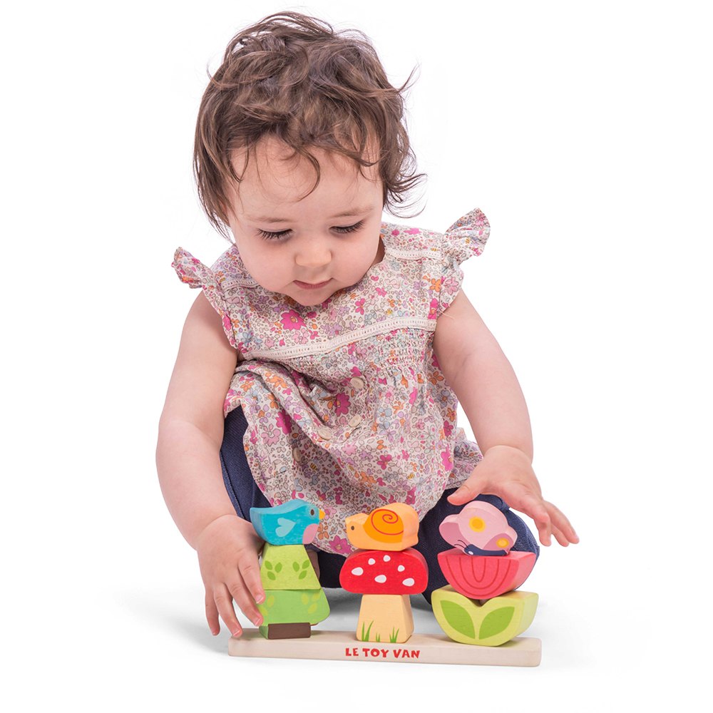 Dette legetøj er ikke bare en samling af 9 farverige stykker, der kan stables; det er en port til en eventyrlig have, hvor kreativitet blomstrer og små hænder kan udforske og skabe.