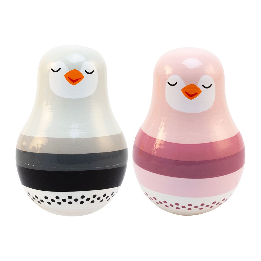 Pingvinen vipper frem og tilbage, men vælter aldrig - og den fine klokke indeni laver en blid lyd, når barnet leger med den.