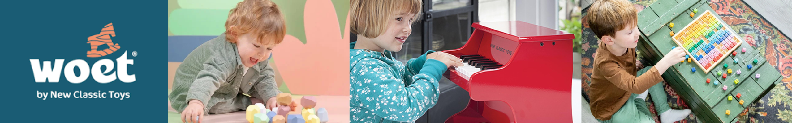 Alle musikinstrumenter fra Woet by New Classic Toys er fremstillet i træ og udviklet med fokus på kvalitet, holdbarhed og sikkerhed. De er skabt til at kunne bruges igen og igen i hverdagen og til at give barnet positive og trygge oplevelser med musik fra en tidlig alder. Aldersangivelser er vejledende, da børn udvikler sig forskelligt.